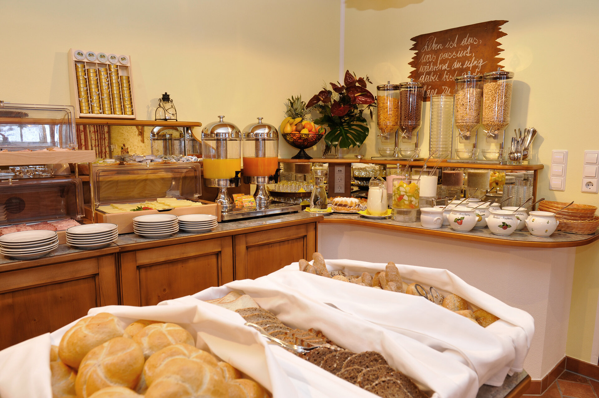 In unserem stilvoll eingerichteten Restaurantbereich verwöhnen wir Ihren Gaumen mit einem umfangreichen Frühstücksbuffet sowie lokalen und internationalen Schmankerl. In der gemütlichen Bar offerieren wir Ihnen ausgesuchte Weine mit Schwerpunkt Österreich, diverse Edelbrände sowie einheimische Spezialitäten.
